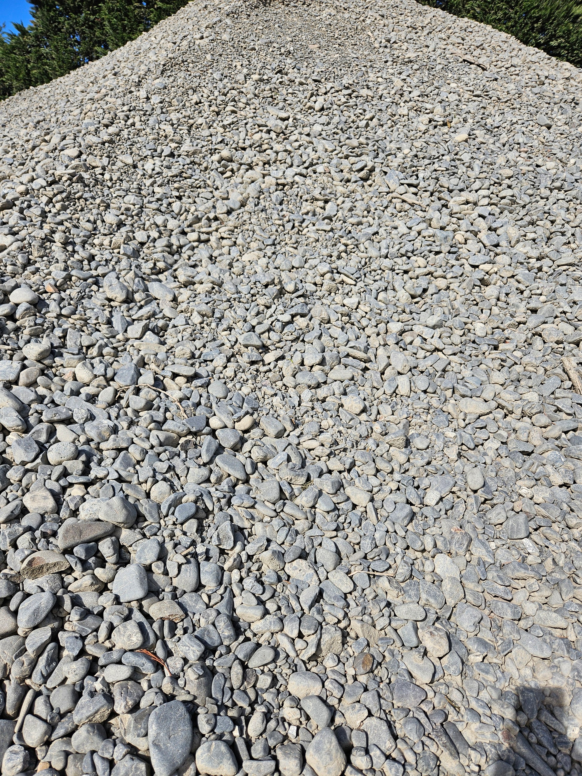Local riverstone, graded to 10-60mm. Minimal fines. Good soakage stone for trenches. Can also be used as a dust free capping layer on tracks for heavier vehicles.